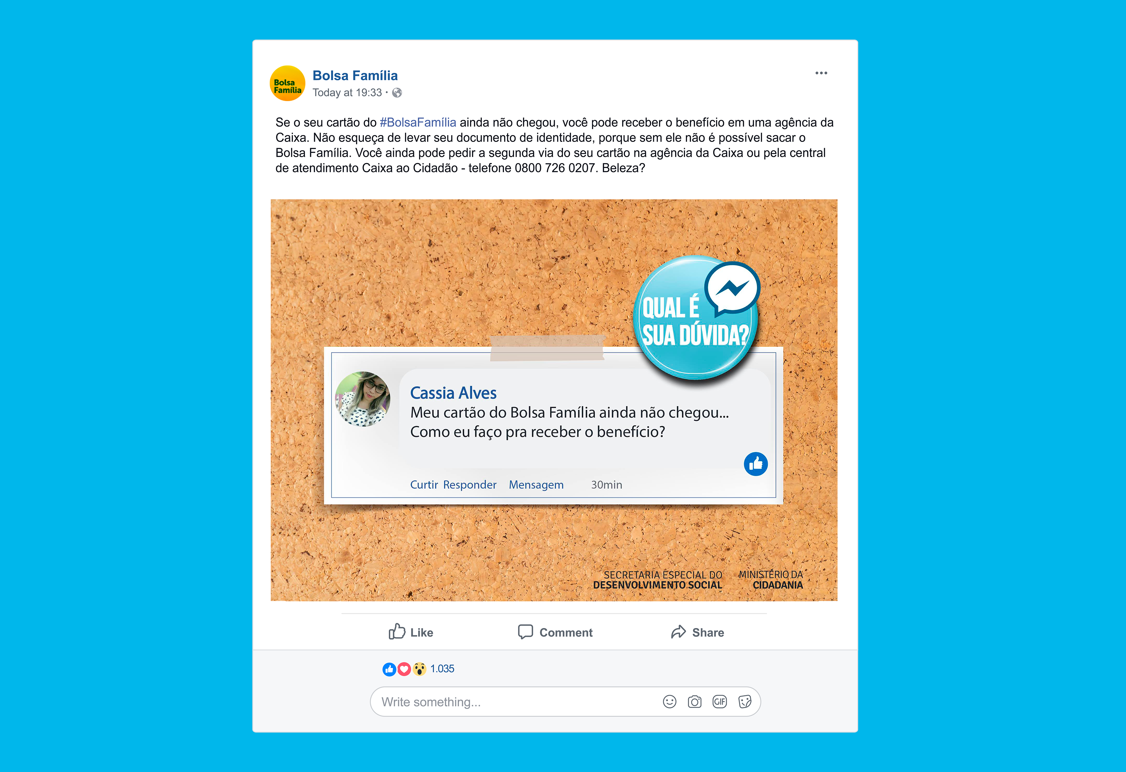 Qual é sua dúvida? Redes Sociais Programa Bolsa Familia Ministério do Desenvolvimento Social e Ministério da Cidadania - Governo Federal